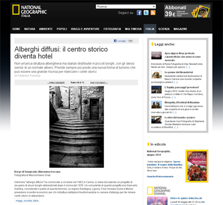 Il portale web di National Geographic Italia dedica in prima pagina un articolo agli alberghi diffusi [...]
