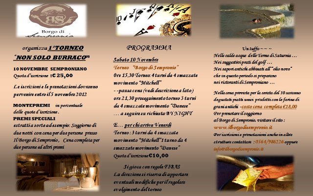Il Borgo di Sempronio organizza il 1° Torneo di "NON SOLO BURRACO" 9-10 NOVEMBRE 2012 Nella [...]